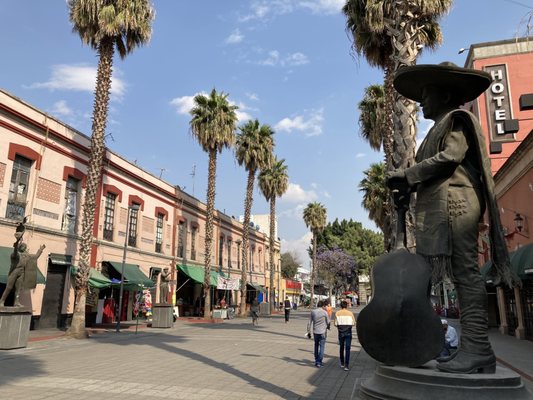 Plaza Garibaldi to me looks a bit sketchy, a lot of Mariachiis around talking and trying to get your attention, a lot of sketchy people staring at you, and homeless.We wnt early evening, on a Sunday.About 7pm.A guy start insisting in taking us to a place with a show in the same plaza fist we say No, gracias maybe later .We went a walk around looking at the plaza y and taking pictures of the different famous singers statue around. Later we decided to entered to the place the guy suggested earlier and he was behind us like a ghost walking us inside and making sure a guy saw him, like he make commission or something, anyway show was quite entertaining here but the servers were awful at the time of leaving they put an extra service on the bill that was no the deal, they asked initially for $50pesos each for the show and what you consume in drinks and food , we only asked for 2 beer, anyway place was empty when we arrived and about 9pm got packed, but this place does not even have a business name outside .Inside was ok, very mexican vibes restaurant, go in as your own risk and definitely look at your bill before payment it.It is around the corner from the main street entrnce to the plaza, you have a climb some steps to see the palce, it is almost in front of the main plaza stage.Good luck and enjoy