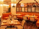 Oysters, duck burger, steak, and baked Alaska. Chic vibe.