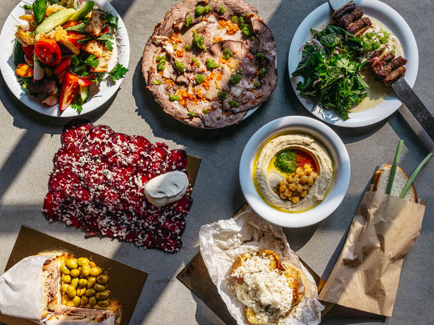 A third of the menu consists of straightforward sandwiches on fluffy white bread, and most other options rely heavily on fresh produce. A beet carpaccio topped with shaved horseradish is easily greater than the sum of its parts, and a baked potato stuffed with crème fraîche will make you want to move Scarsdale, throw away your iPhone, and live off the land. There are regular cameos from schug and tomato seeds—notably on some luxurious roast beef—and you'll see dill, mint, and parsley everywhere, as if the restaurant gets a tax break if they use enough herbs.
