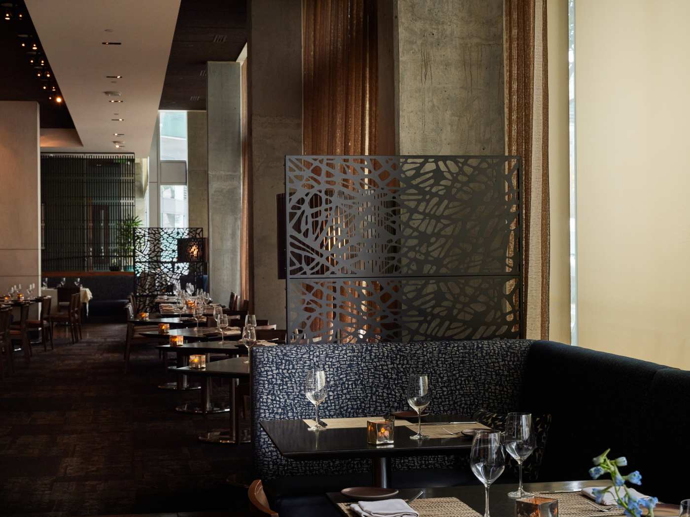 New American cuisine, cocktails, and seasonal dishes in a posh space