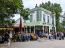 Airy pub with park views, beer garden, DJs, and boules
