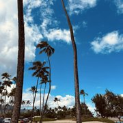 The lookout itself is a concrete, railed square, connected to a covered pavilion with placards giving history about Oahu. There's also a large, sloping grassy field in front of the concrete lookout. It can be exceedingly crowded with huge numbers of people taking pictures and enjoying the view. The grassy field is enclosed by heavy vegetation and kids will often run around. It's one of the nicer places to have a sunset picnic dinner. It can be extremely sunny and hot during the afternoon here as there's almost no shade outside of the pavilion, so wear sunscreen.