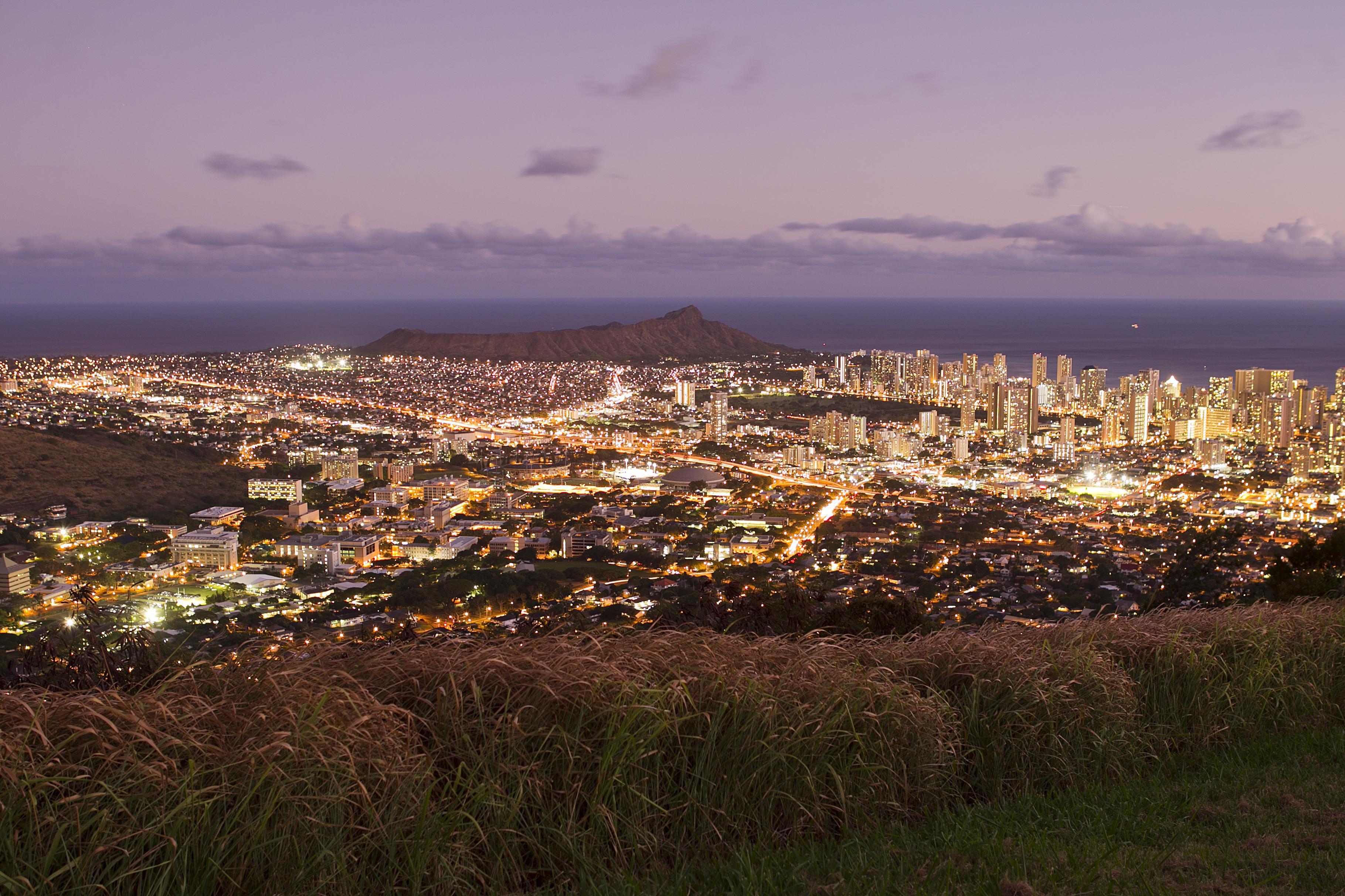 The Pu'u U'alaka'a State Park consists of three public parts, a short hike, a picnic area, and the lookout that views southern Oahu, stretching from Kahala to the Wai'anae mountain range and mount Ka'ala, the tallest mountain on Oahu.