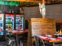 The interior is definitely.. interesting. They have everything from Dia de los Muertos decor, Christmas decorations, Avengers posters, and a "Keep Calm and Say I Do" sign on the bathroom door. The booths are cushy and nice, and have buttons to call your server over if you need. Most of the interior has wood paneling and lights above. There's a slight "Squid Games" theme worked in, too.