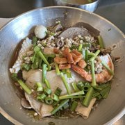 The add-ins looked somewhat unappetizing. The egg was squished into a little salsa cup and refrigerated. At first we thought it was a side of mayo. Beef was cold as well. I guess in the larger picture, I've been to plenty of ramen places where the soft boiled egg was stored cold, but never misshapen like this one was.