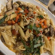 My version of the simple grilled chicken sandwich! Scrumptious! Added Swiss, mushrooms, and grilled my onions instead. Chipotle mayo on the side w/ garlic fries. Juicy chicken, fresh veggies, and a prompt waitress. Satisfied I am!