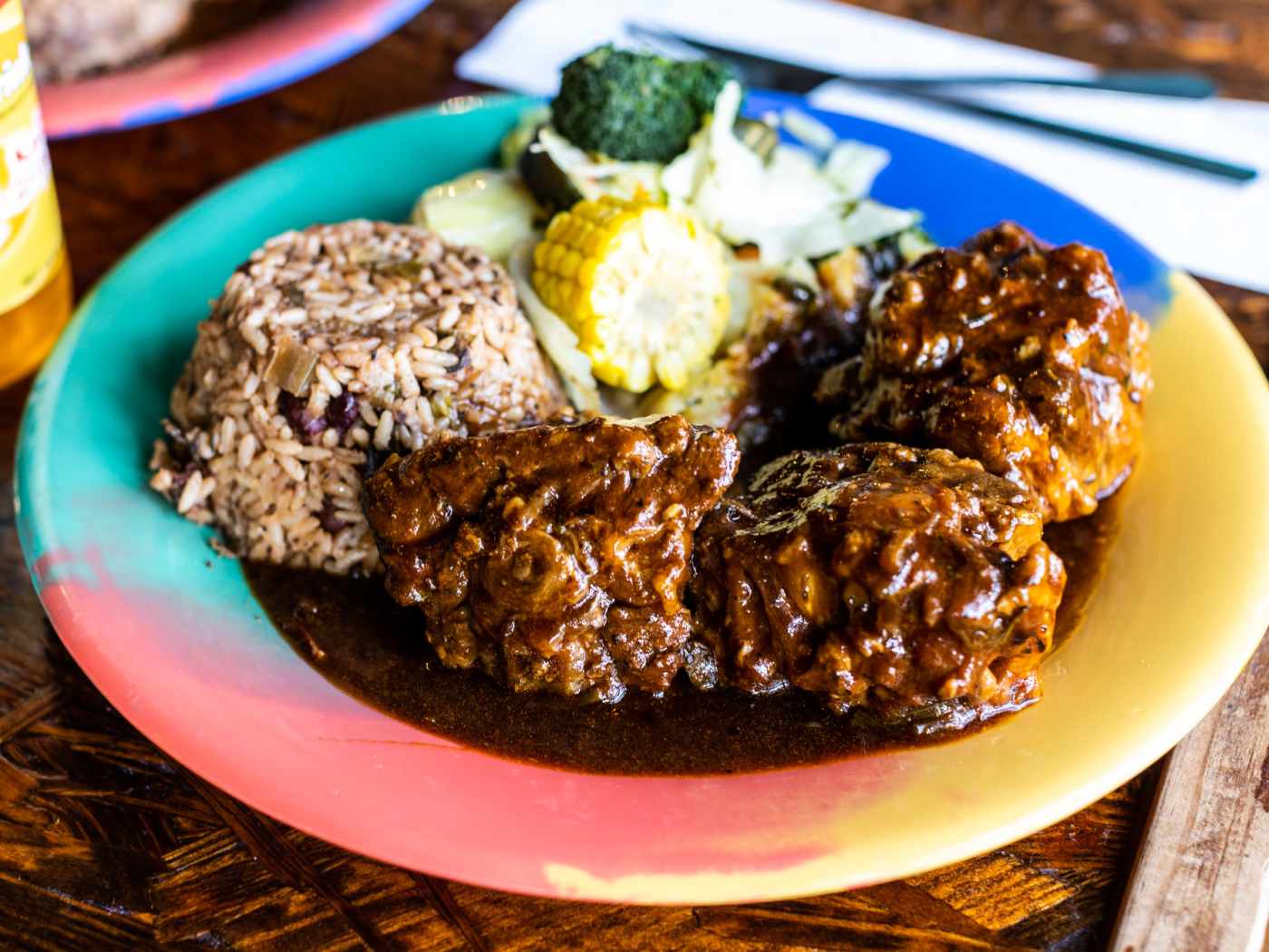 Caribbean spot with jerk chicken, oxtails, and rum punch