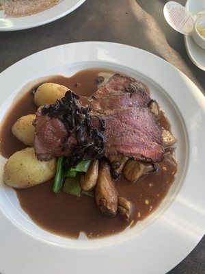 The food was delicious. Even the broccoli, which might sound strange: it was just steamed, no seasoning or sauce, and it was wonderful. Though definitely better with the buere blanc sauce. I had the plaice with salmon and veg. Plaice is a delicate flat fish, similar to flounder. Excellent.