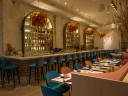 "Reyna, a Toronto import near Union Square, calls its food “Mediterranean fusion," so you'll discover Turkish, Greek, and Spanish touches in dishes like their signature lamb shank baklava. We tend to prefer their seafood plates—get the crispy octopus on a bed of green harissa sauce and salmon tartare with lemony labneh that will remind you of lox and cream cheese. The large dining room is filled with teal and light pink velvet seating and a very long white marble bar—the dim lighting and low-key music make Reyna feel like a lounge, so come here for drinks and small plates when you want to make dinner your whole night out. Don’t miss their fun bathrooms, solely lit by “Your kiss is on my lips” and “Mine is bigger than yours” neon signs. photo credit: Ryan Emberley" - Kenny Yang