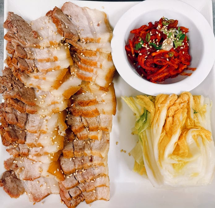 The ggotgaetang was the centerpiece of the meal, and it was superb, spicy and truly rich with crab flavor. The stew came already fragrant with crab, herbs, and bean sprouts, and it continued bubbling on a mini-stove on our table. It was fantastic with some rice and crab meat, and when we were almost done, we got some soojaebi to add to the stew, soft hunks of hand-torn dough that we slurped down with that heady broth.