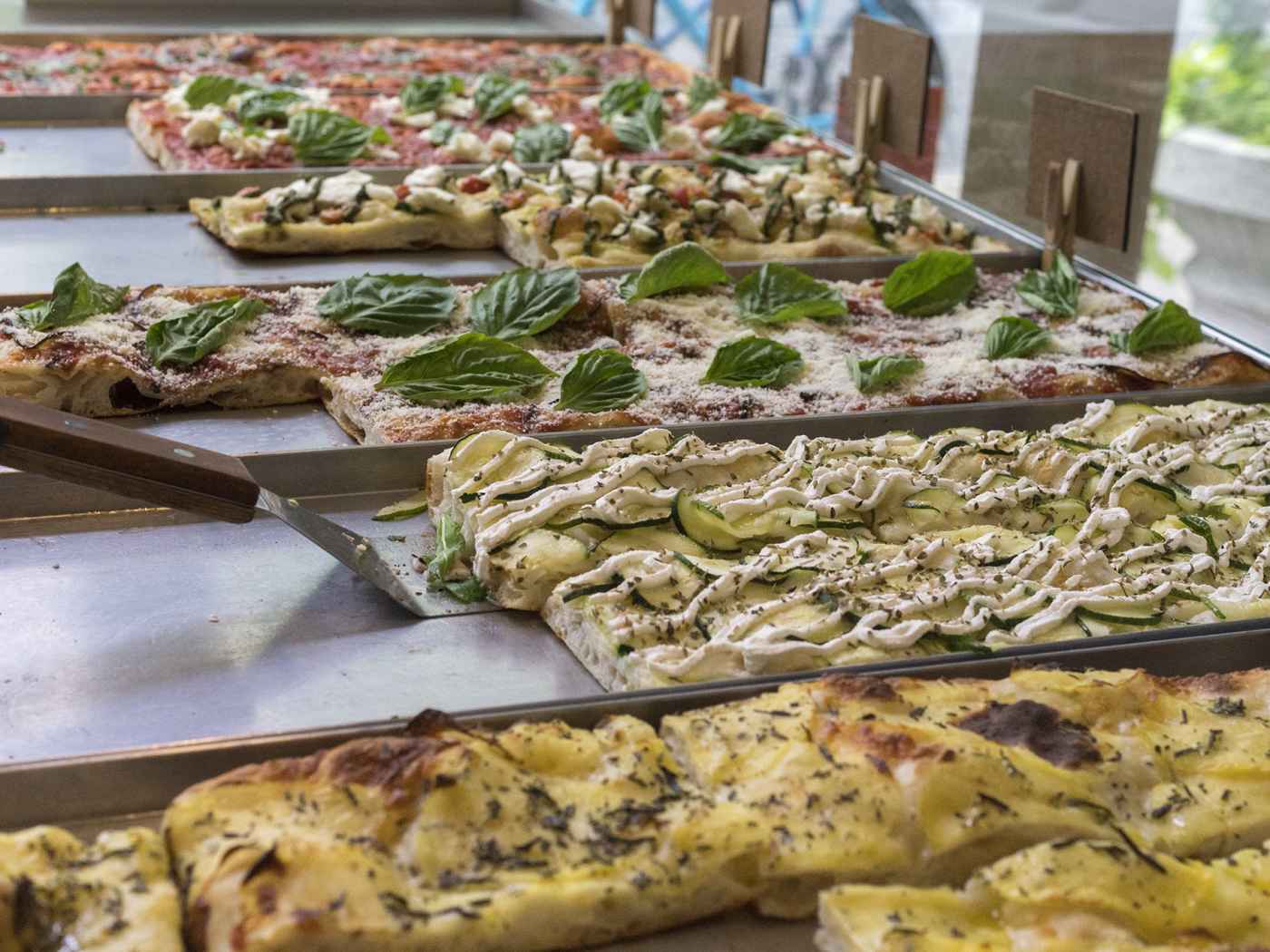 Roman-style pizza al taglio, risotto balls, panini sandwiches