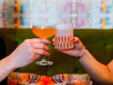 Jaclyn had the Delta Royale made with Blanco Tequila, Blanc Vermouth, Lime, Giffard Fraise de Bois, Chareau, & Lavender. Determined and full-throated with a scarf snapping taut - this cocktail was strawberry pink & inspired.