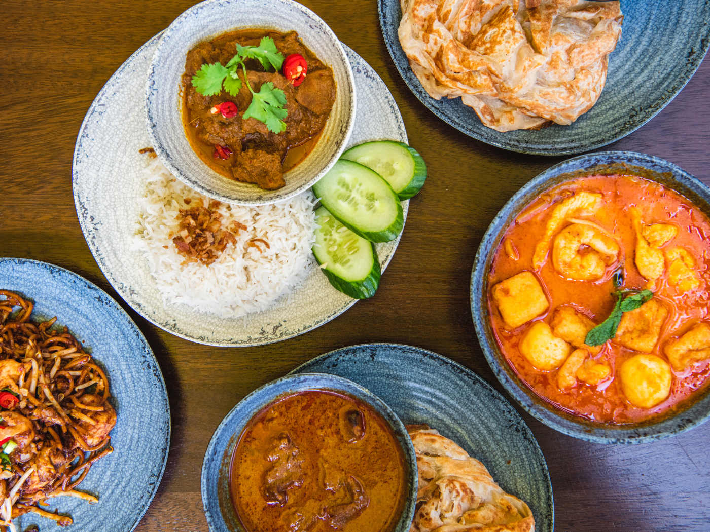 Flaky roti canai with curry, noodles & other Malaysian staples