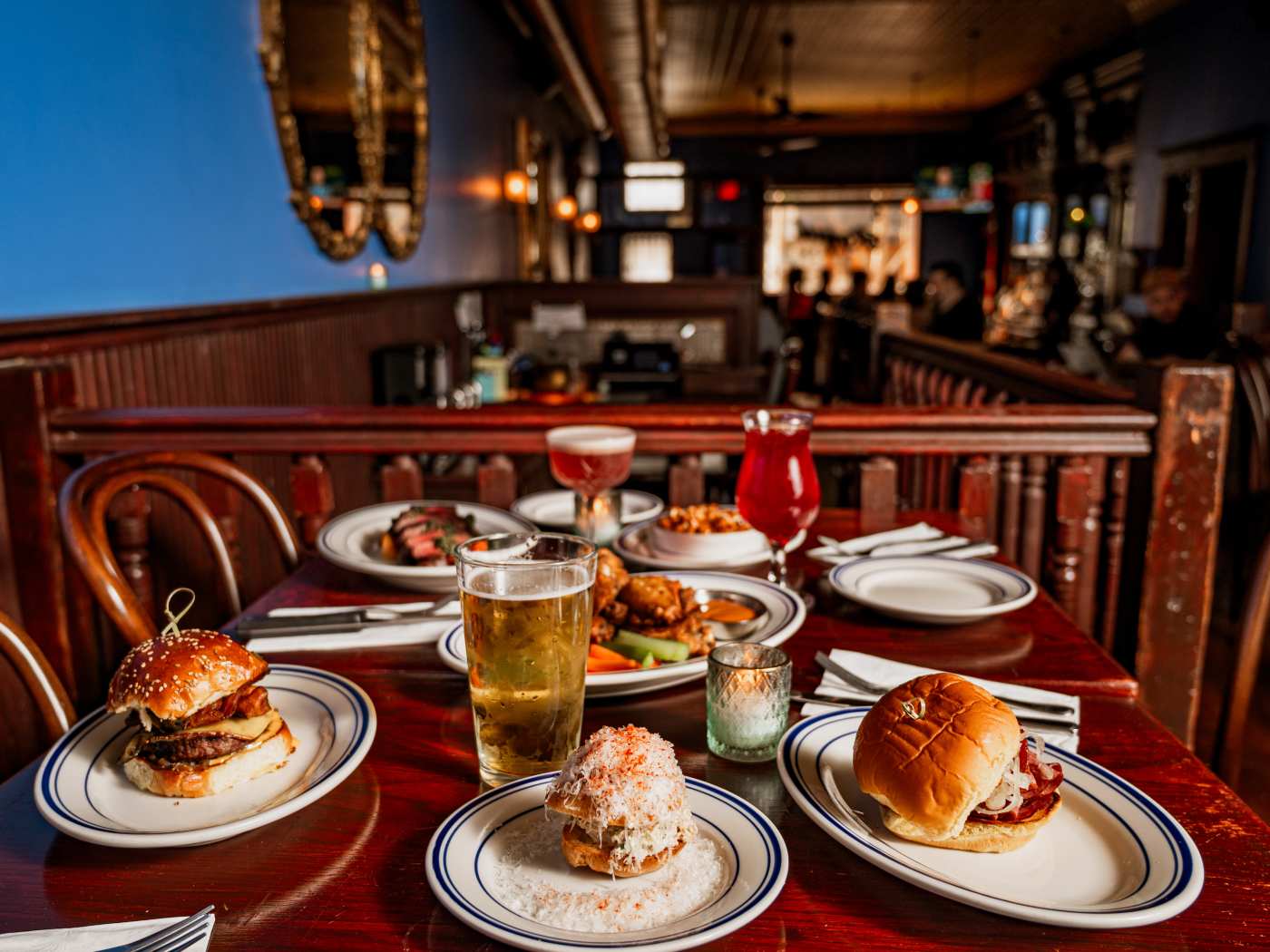 "At the reopened version of this Queen Village standby, old regulars mix with new ones. A classic movie might be playing on one TV and a game on the other. And the kitchen, which closes at 1am, is a saving grace for anyone who deserves more than drive-thru nuggets. This is a good place to sit down if you want dim lighting, reliably good wings, and a spicy burger—but not the messy late-night scene of a dive." - candis mclean