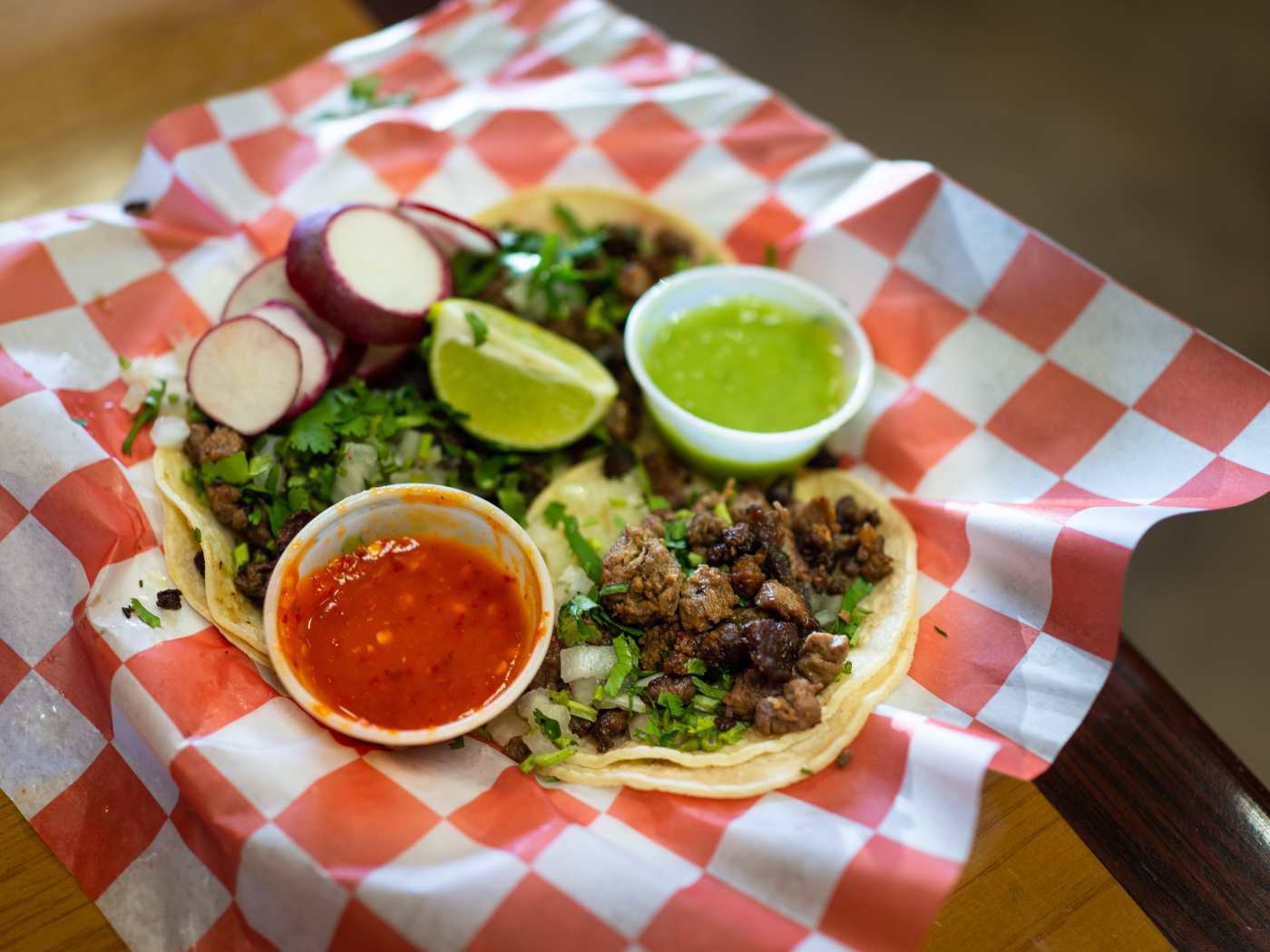 "Equal parts panaderia and taqueria, Mi Tradición is a one-stop shop for tacos, conchas, and everything in between. The tlacoyos here are excellent—stuffed with beans and epazote, and topped with nopales, crema, and cotija—and we usually like to pepper in some huaraches, picaditas, and whatever else arrives on the blue corn masa. But the gringa pastor served on housemade flour tortillas might be our favorite thing here, packed full of tender pork, sweet pineapple, and a bit of salty cheese for a perfectly balanced bite every time. On the way out, grab a box full of pastries from the bakery side of the shop to get you through the rest of the week." - nicolai mccrary, raphael brion