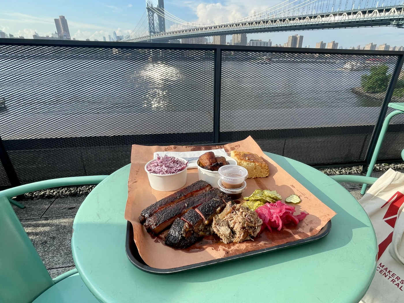"Bark Barbecue, a roadside Ozone Park pop-up that turned into a Smorgasburg staple, is hands down our favorite part about Timeout Market. Their stall is on the roof, so you can look out at the water and eat their black pepper-forward, Texas-style barbecue with hints of the pitmaster’s Dominican heritage. Go for both the salty and sweet stuff here, like juicy, smoky brisket with sweet maduros, or some peppery ribs with torta, a cakey Dominican cornbread with a warm spice-infused honey syrup." - willa moore, bryan kim, sonal shah, molly fitzpatrick, carina finn koeppicus, hannah albertine