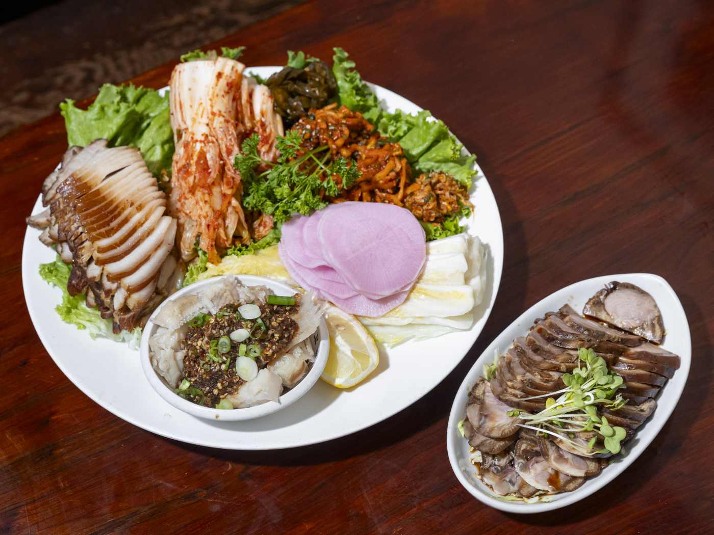 Traditional Korean fare featuring steamed pork belly & seafood pancakes