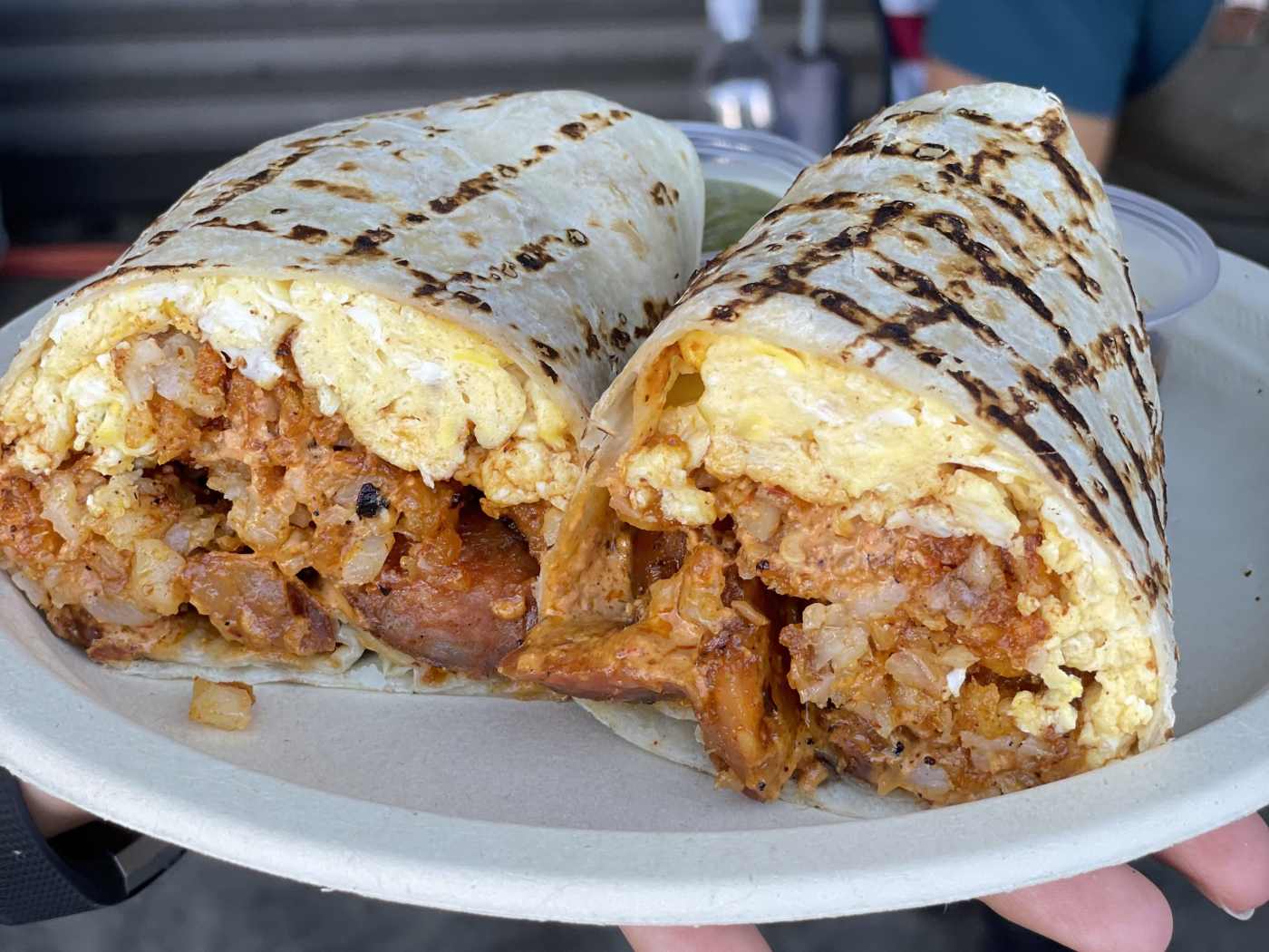 "Macheen, which pops up on Monday to Saturday at Boyle Heights’ Milpa Grille, serves a birria breakfast burrito stuffed with crispy tater tots and cotija cheese. If that combination of words isn’t enough to get your mind racing, we might have to reexamine our friendship. Their crunchy, saucy burrito can also be made with excellent crispy pork belly or longanisa, but we almost always order the rich, braised beef that drips spicy broth all over the scrambled eggs inside. If you can’t make it to Milpa Grille during the week, Macheen also serves burritos at Smorgasburg on Sundays." - sylvio martins, garrett snyder