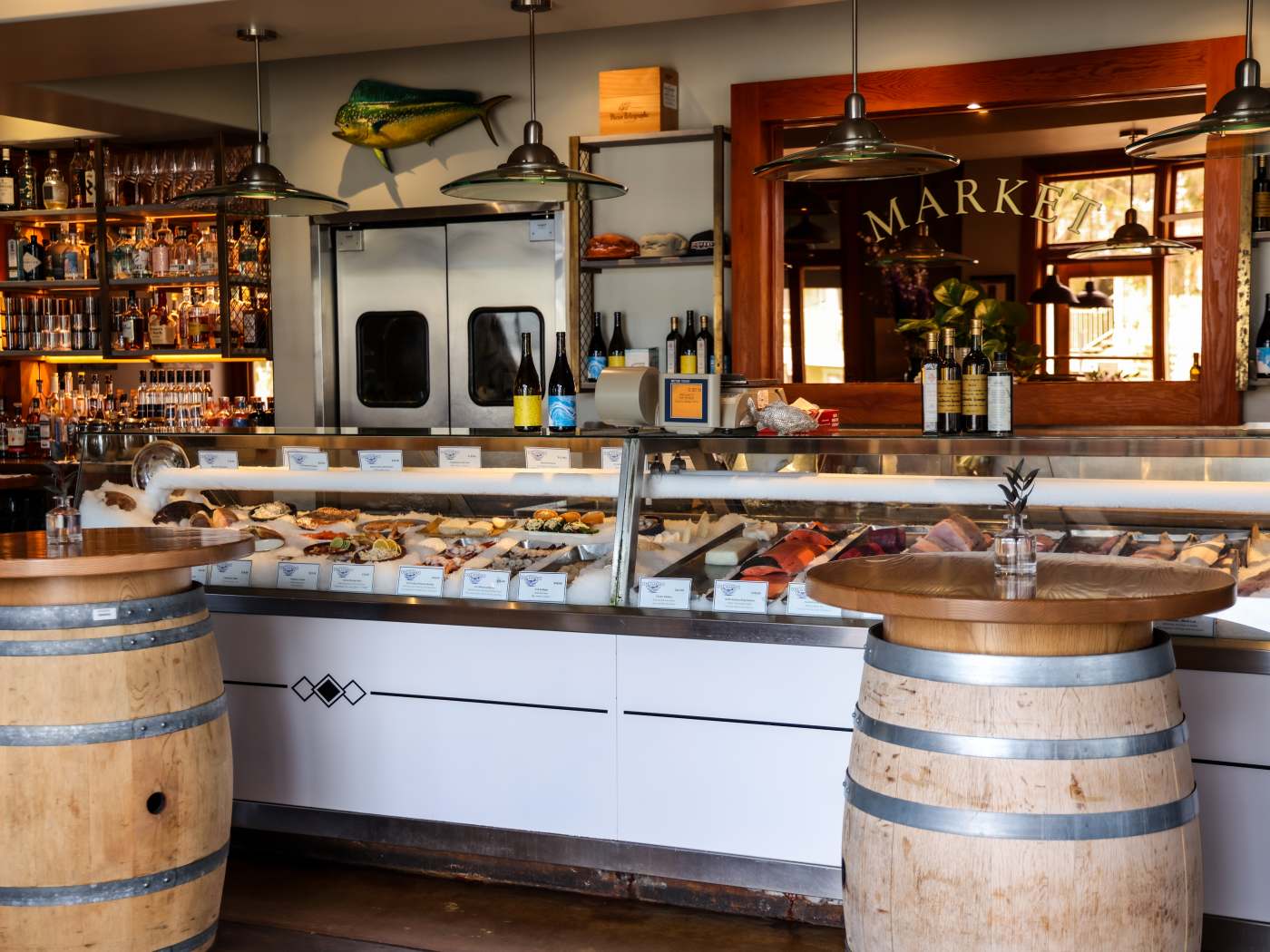Market-fresh seafood, retail market, and warehouse dining experience