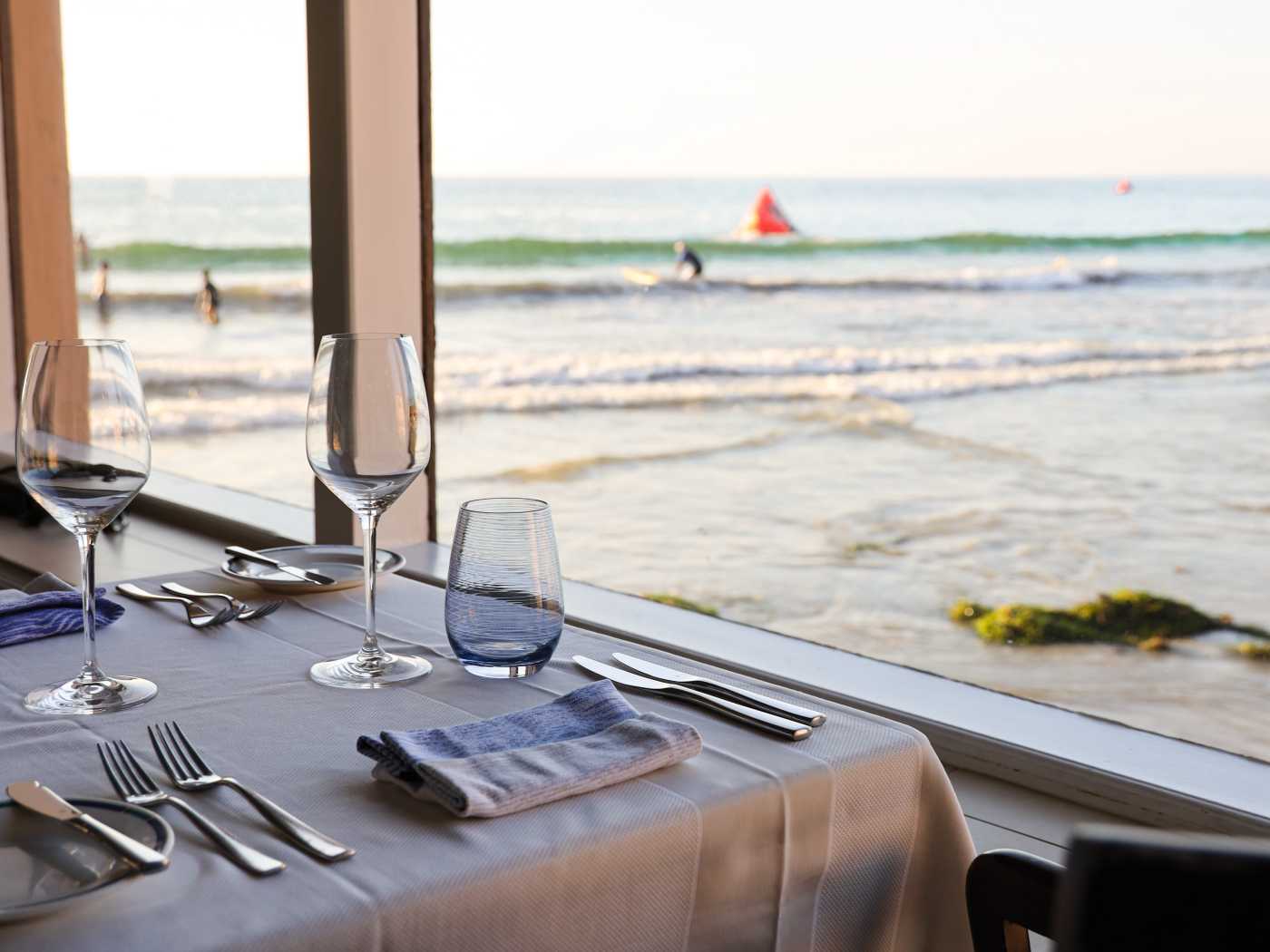 "Known for its unparalleled view of La Jolla Shores, the Marine Room is a romantic setting for celebrating milestones and special occasions. For a front-row seat of high tides splashing against the large windows, book a table during the High Tide dinner series: Held during peak tide time to ensure dramatic waves, diners can choose between a four-course dinner or a chef’s table experience while enjoying live music and a sunset toast. Earlier seatings include the Rising Tide experience between 4:30 and 5:30 p.m. in which guests can choose between an a la carte menu or a three-course dinner. Signature dishes include the king salmon or surf and turf, which pair well with a kelp martini." - Roxana Becerril