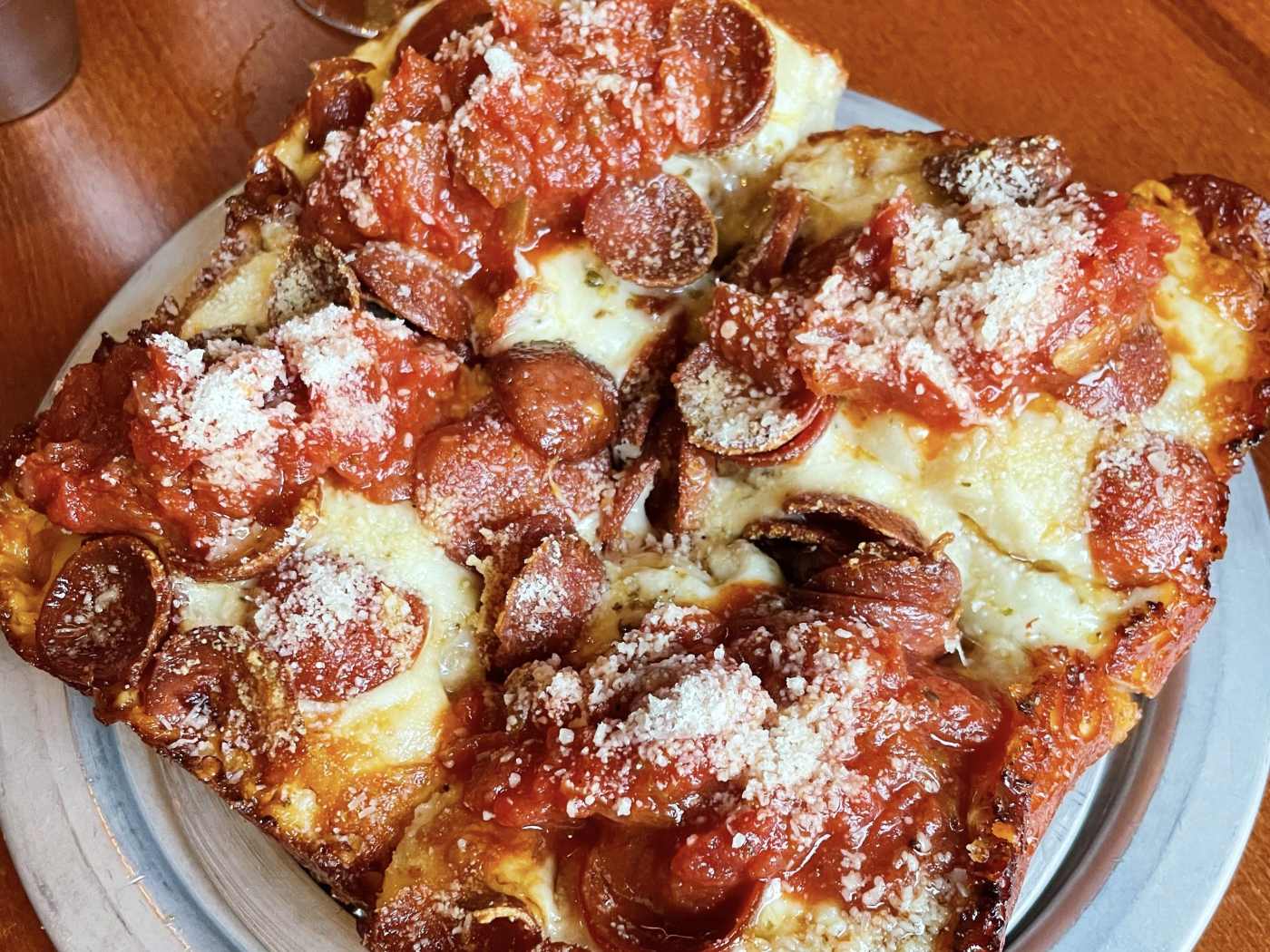 "This spot does mainly Detroit-style pies with sponge-like crusts, and serves them in a casual space that doesn't mind if you roll up in a t-shirt and sweats. The move is to sit at the bar, order a beer, and strike up a conversation with whoever’s sitting next to you over a slice of pepperoni with slightly chunky tomato sauce (the best pie here). But any of the high tops in the dining room will get the job done if you're coming with friends and ordering a big spread of multiple pies, salads, and mozzarella sticks." - lani conway, julia chen 1, ricky rodriguez