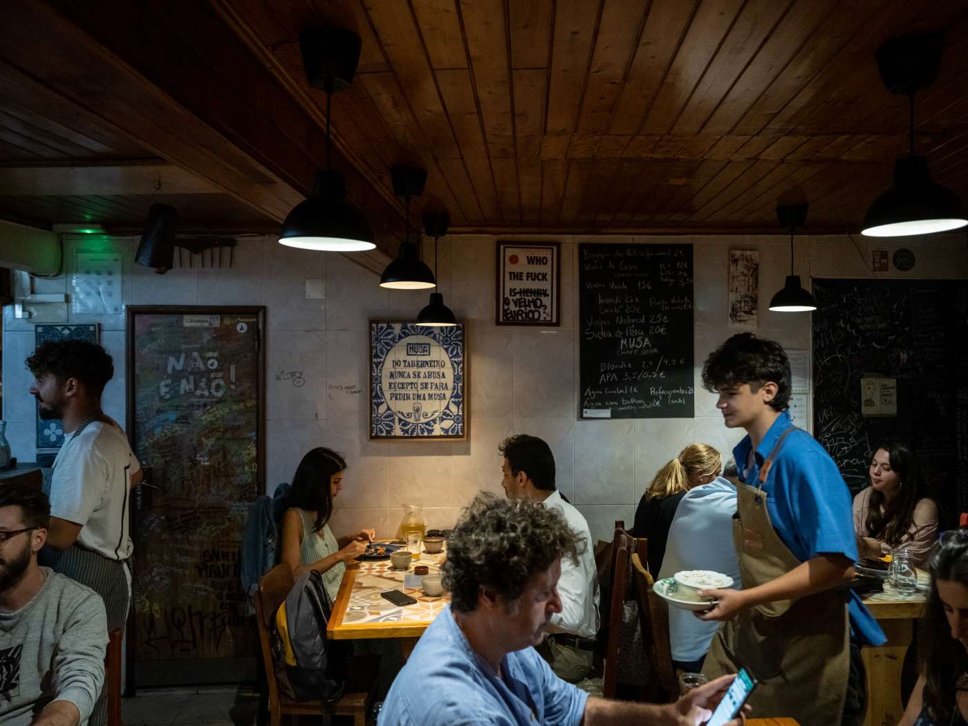 "Located in Mouraria, one of Lisbon’s oldest neighborhoods. The restaurant features a modern touch with graffiti-covered walls and mismatched plates, while retaining traditional elements like a tiled mural. It offers elevated classic dishes such as bacalhau salad." - Austin Bush