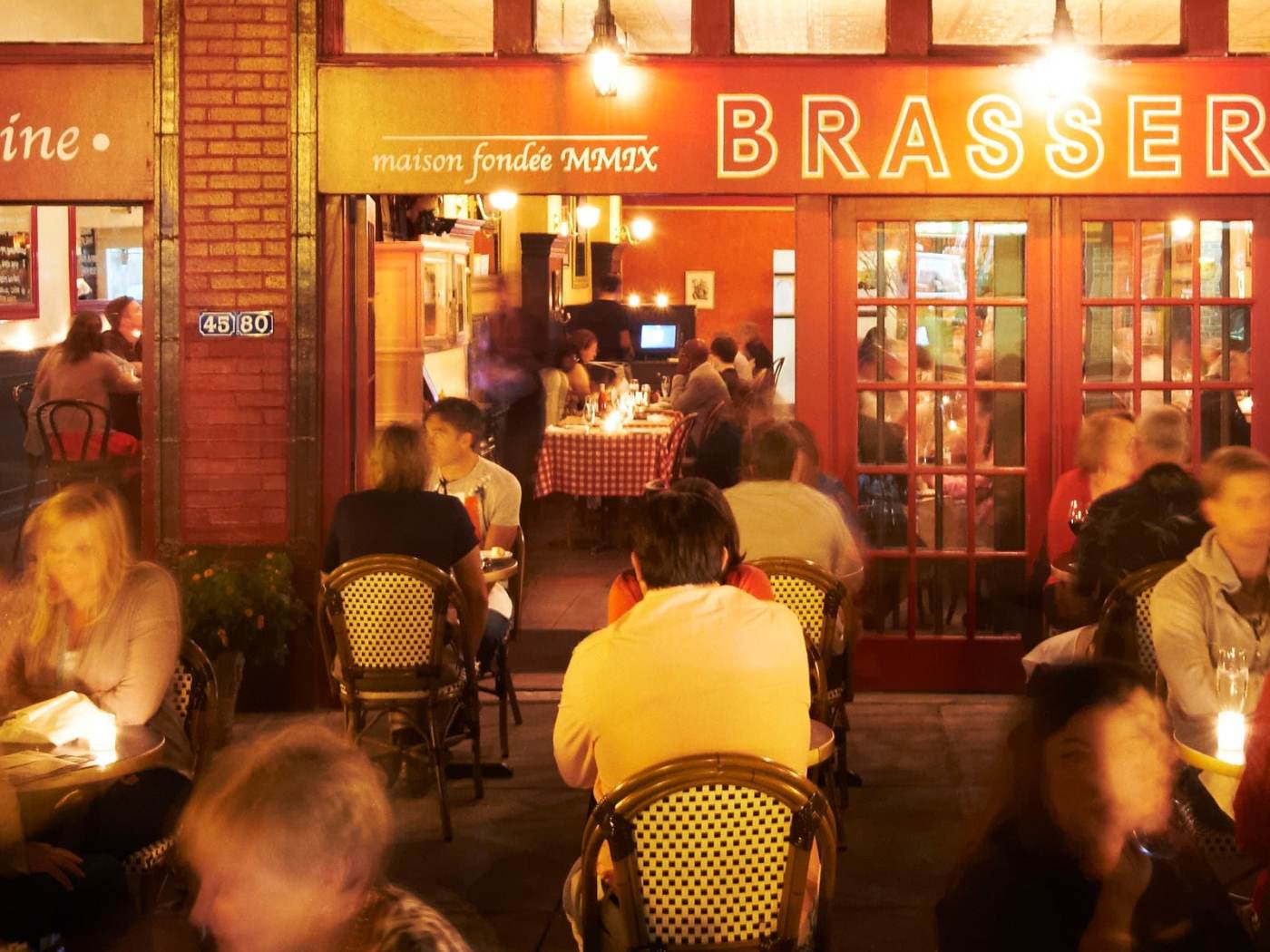 Classic French brasserie fare, brunch, steak frites, and desserts