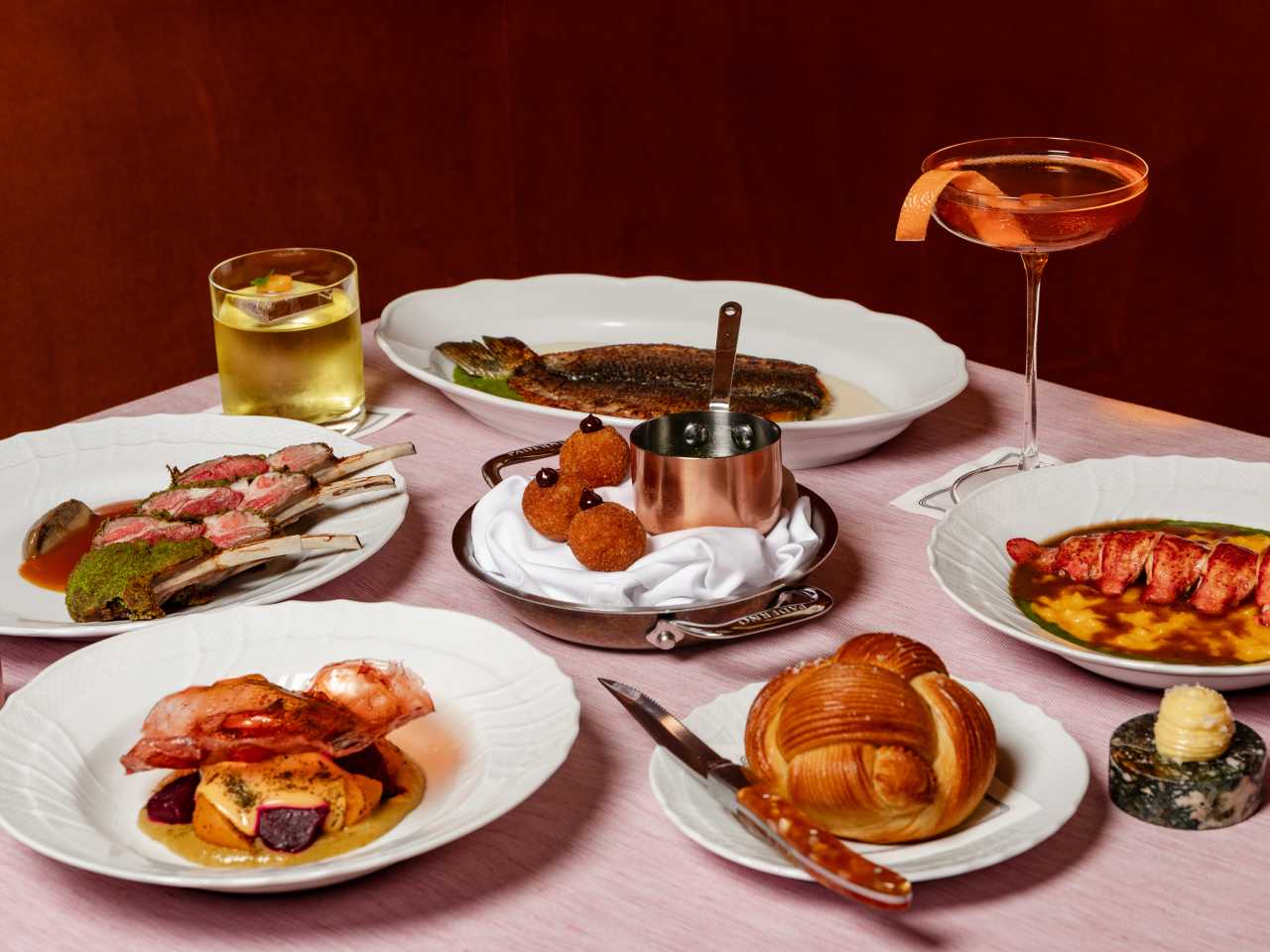French-Italian cuisine, Art Deco room, lobster souffle, brioche