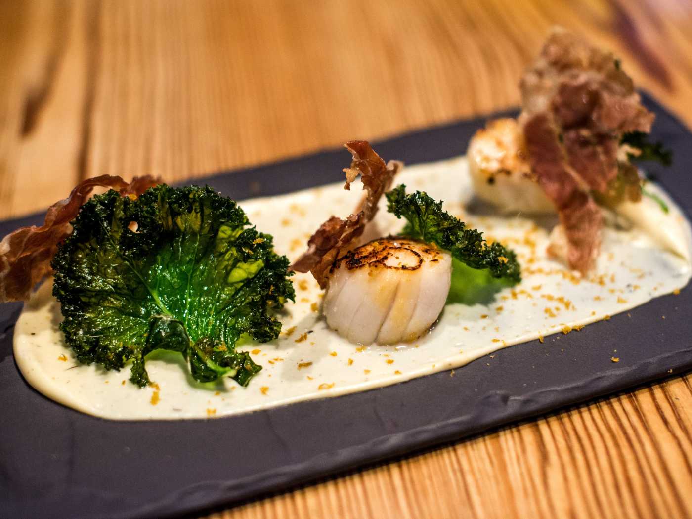 After much decision , I orderd the scallops with crispy bacon. asparagus and vanilla & celeriac puree. For the mains Squid ink gnocci with vine tomatos.My friend ordered the award winning goats cheese, beetroot puree on a bed of spinach (minus the walnuts because of her nut allergy). As a main she selected the Chefs Special Baffo Nero fillet of beef.