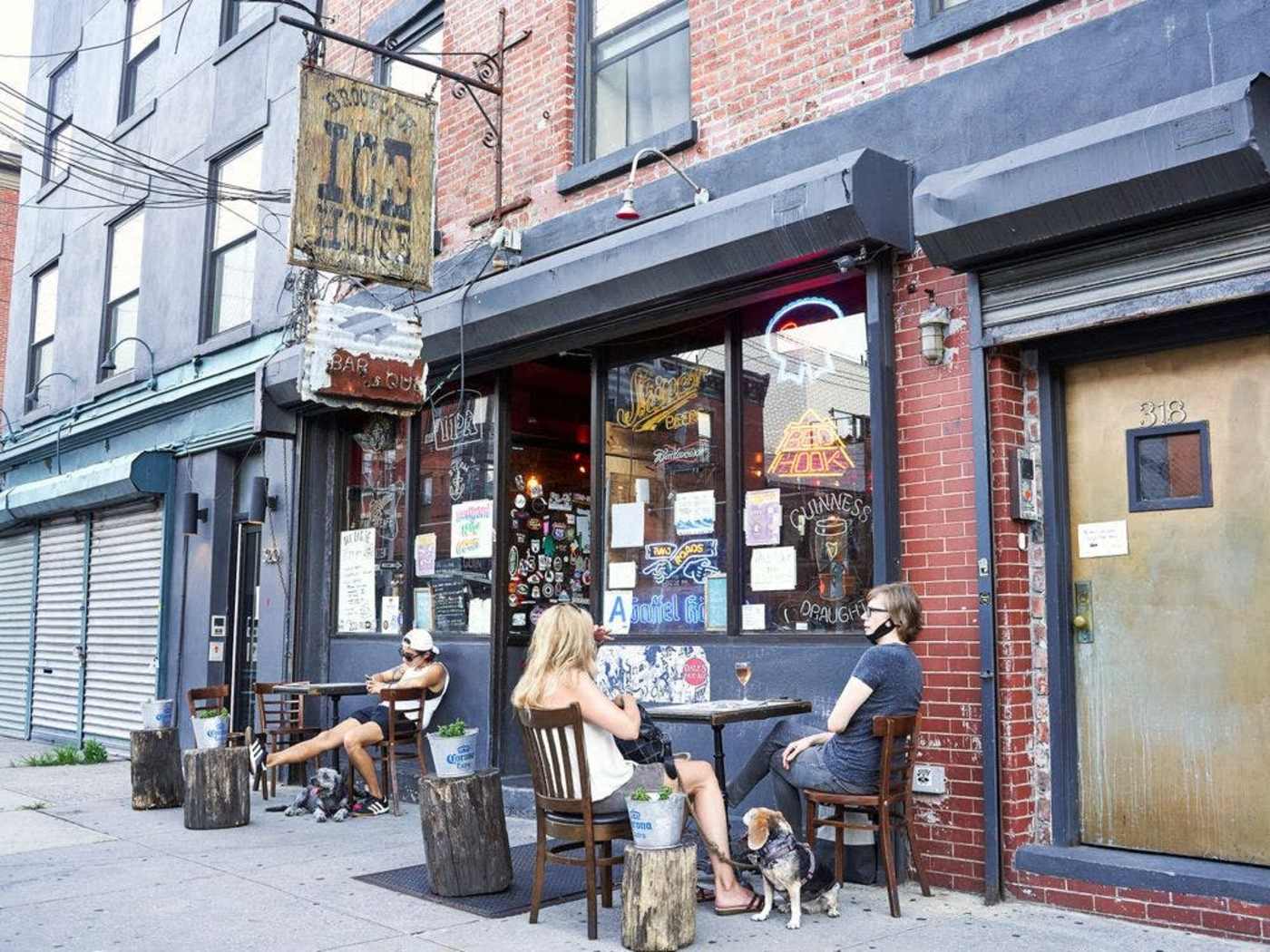 "Both the patio and the sidewalk area at this classic neighborhood spot are open for outdoor dining. Brooklyn Ice House serves a combination of bar food like onion rings and frito pie, as well as BBQ specials like dry-rub spare ribs with mac and cheese. Their patio is pretty spacious, and it’s nice and hidden from any Citi Bikers parading down Van Brunt Street on a weekend afternoon." - hannah albertine