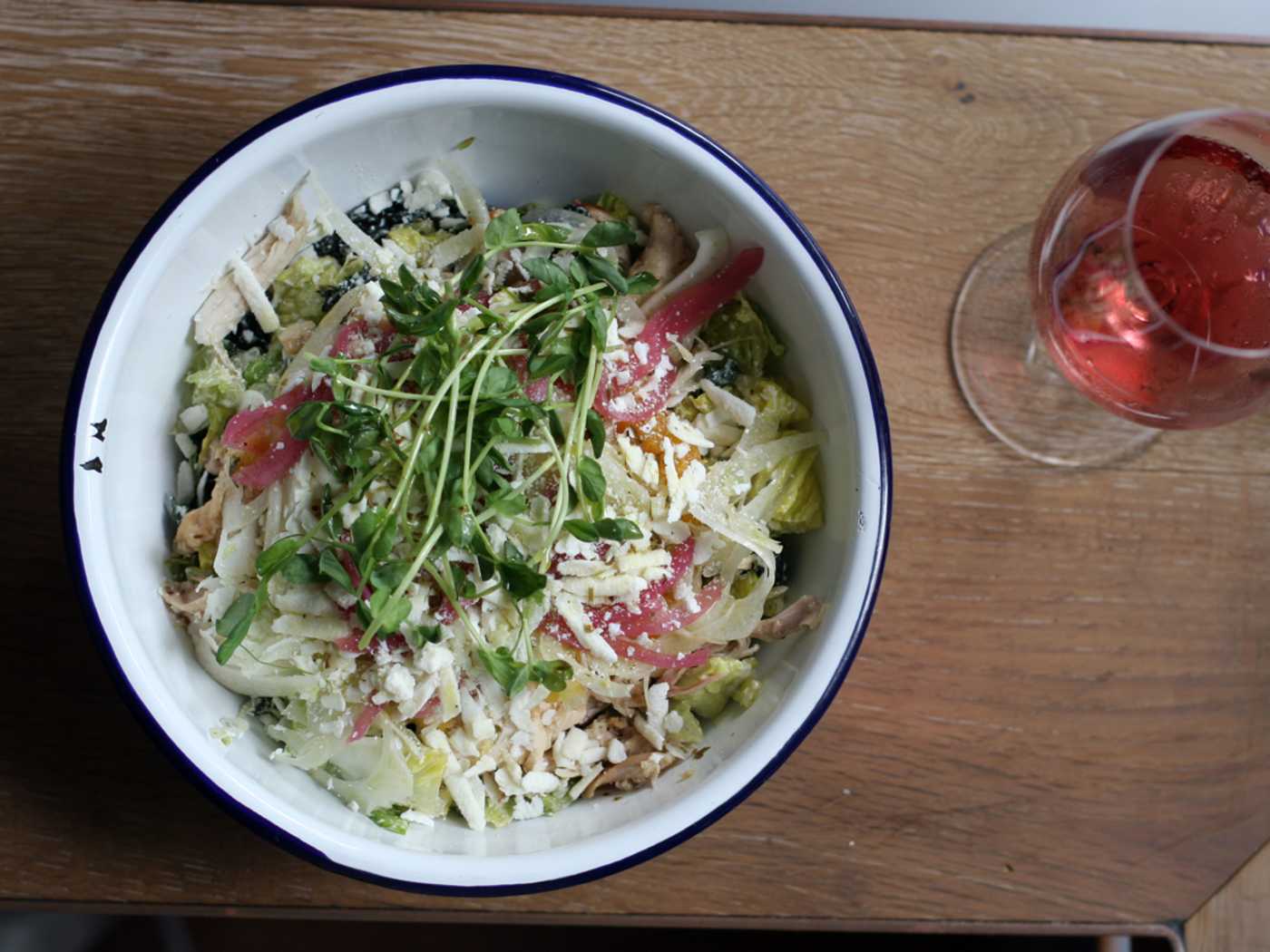 "This salad from the fast-casual Greek(ish) mini-chain is an old faithful for time-pressed people. Those in a time crunch wolf down the salad like The Hulk, but it’s pretty damn delicious when you have plenty of leisure hours, too. The citrus, fennel, pickled onion, and greens are drenched in a creamy olive oil dressing, but the salad never feels heavy. This is great news for all ingredients—especially the warm shredded chicken that soaks it up like a sponge." - julia chen 1, lani conway, ricky rodriguez, patrick wong