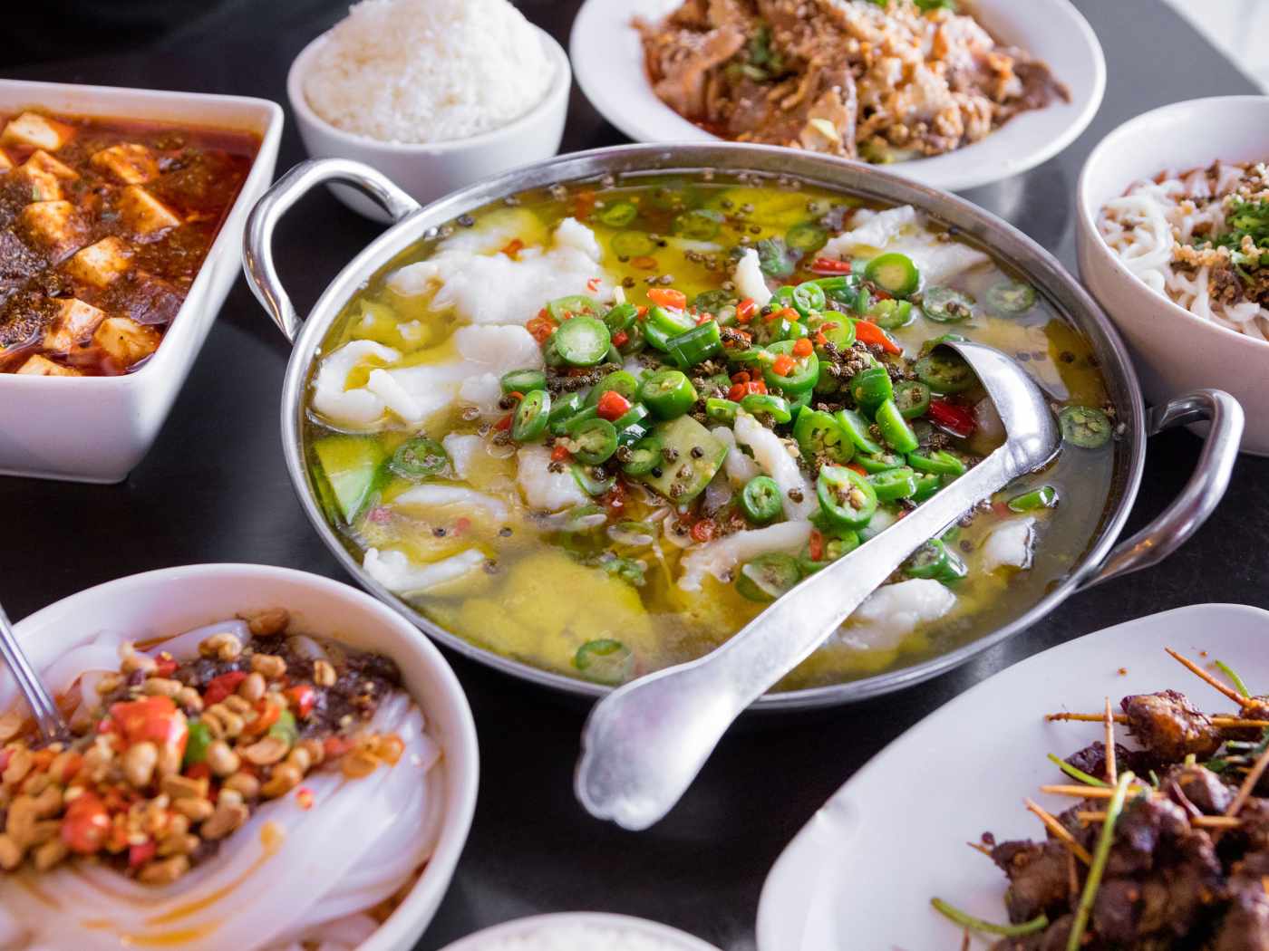 "Alhambra’s Chengdu Taste is far from some diamond in the rough. In a region known for having some of the best Chinese restaurants in the country, Chengdu Taste is a household name. This casual family-run Sichuan spot is less in the business of searing off your tastebuds and more using tingly peppercorns and smoky chiles to pump up incredible dishes like cumin-rubbed toothpick lamb, cold sliced beef in a garlicky chili oil, and velvet-soft boiled fish in a green chili broth that, ignoring what we said earlier, will probably sear off a few taste buds. And for frigid nights that dip below 65ºF, the same owners serve tongue-numbing bowls of Sichuan noodles at Mian, with locations in San Gabriel, Cerritos, and West Adams." - sylvio martins, brant cox, garrett snyder, cathy park