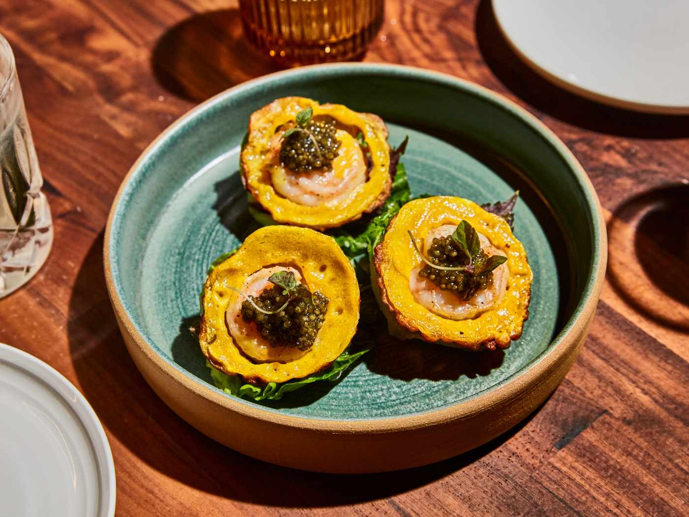 "A night at Bodega SF is full of surprises—the good kind, unlike accidentally sitting on a melted Ghirardelli chocolate square on the cable car. At this swanky Northern Vietnamese restaurant, savory turmeric pancakes are punched up with caviar, papaya salad is topped with crumbled beef jerky, and cocktails are infused with pandan and yuzu. After a long afternoon of doing Union Square things, like taking family photos by the Christmas tree or shopping, a meal while seated in a cushy leather booth is the perfect cap to the day. Get access to exclusive reservations at this spot with Chase Sapphire Reserve. New cardmembers get $300 in annual dining statement credits." - julia chen 1, lani conway, ricky rodriguez