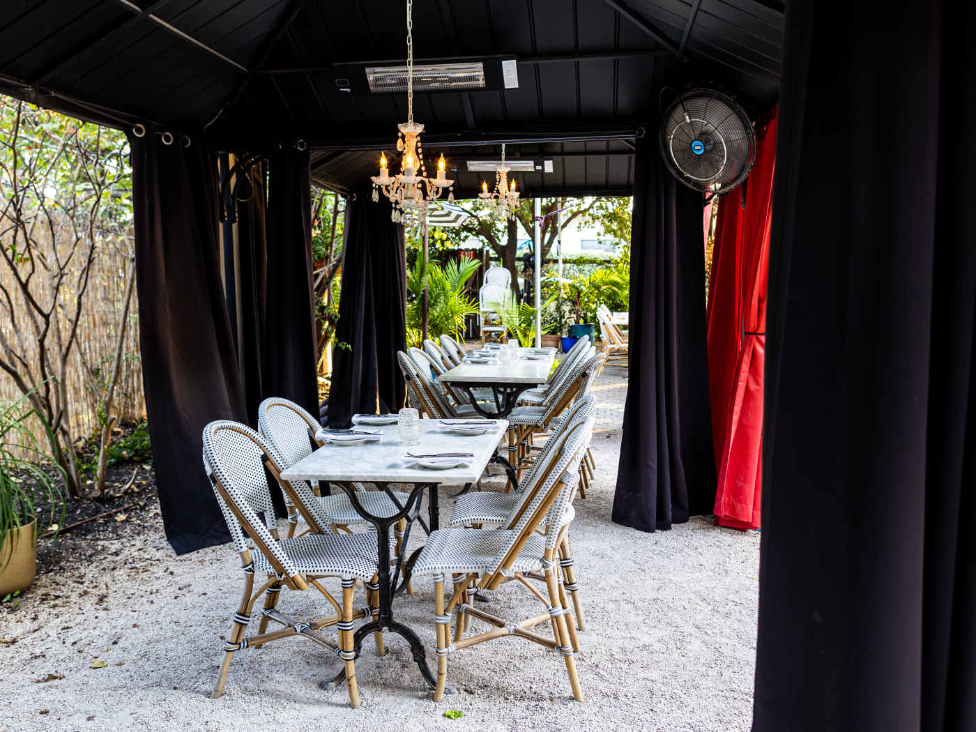 "An intimate date night dinner spot, Justine’s hits the mark with its brasserie menu—is there anything more French than escargots cooked in garlic-herb butter? Where Justine’s really shines is the multiple dining options: There’s the romantic bar with vinyl records spinning, there are the semi-private tented cabanas with chandeliers, and then the relaxing tent near the outdoor oyster bar. If you really want to make a big night of it, there’s the caviar service with the smoked heirloom potato gaufrettes." - nicolai mccrary, raphael brion