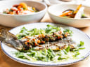 "At Sachet in Oak Lawn I tasted coastal Mediterranean fare—green fava falafel, eggplant schnitzel, and tirokafeteri (a spicy feta dip served with warm pita)—and appreciated the relaxed, welcoming vibe; wooden tables with sun-faded blue chairs made it feel like I’d just come inside from an afternoon on a yacht, and it’s the brainchild of the same husband-and-wife team behind Michelin Bib restaurant Gemma." - AFAR