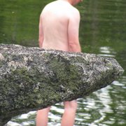A little more walking and you are corralled onto a floating platform that floats (it's pulled by a pulley system) across an underground lake. The water is crystal clear and there is a very nice light show as you cross.