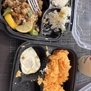First impression, the presentation was already not great, the container they put in the food is a bento-like box, the rice was all over the side and on the cover as well. They put the lumpia on top of the rice so when I opened the container the lumpia was smashed on the rice and when I lift it up to eat it the lumpia the rice was stuck all over it; they did the same thing with my husband's order with the cucumber salad drenched right next to his lechon, no biggie.