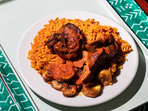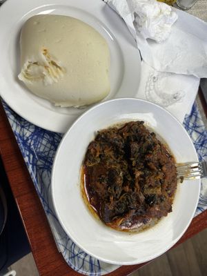 The Food: So now the explanations are done, let's get to the food. Do not be shock by the "natives" Nigerian foods on the cold aluminum containers (in Kyrs P photo). If they "natives" can eat it, so can I. With that mentality, I just ask anything that's not so spicy. So, for a family of 4, we've got the Egusi and the white yam; now this dish is fun to look at and taste ok. It's a learning experience for us. The allege "meat" dish, photoed and mentioned by Kyrs P. is kinda fatty, just cut away the fats and we ate only the lean part of the meat. So, so. Also some sort of stir fry green vegetable with eggs in it. And again, it was so so...ummm, no not collards ( I love collards, I know all 3 collards well by heart), and a fish stew with plain white rice, now guys; watch out and here is where you prove that you've got brave heart. This fish dish tastes really "fishy" and is spicy for me and if you're tolerance level are right around "Goya" or "Crystal" sauces, you should not be ordering this fishy dish and definitely rethink your visit to New Orleans ( but I do love New Orleans, visited 6 times in my life span).