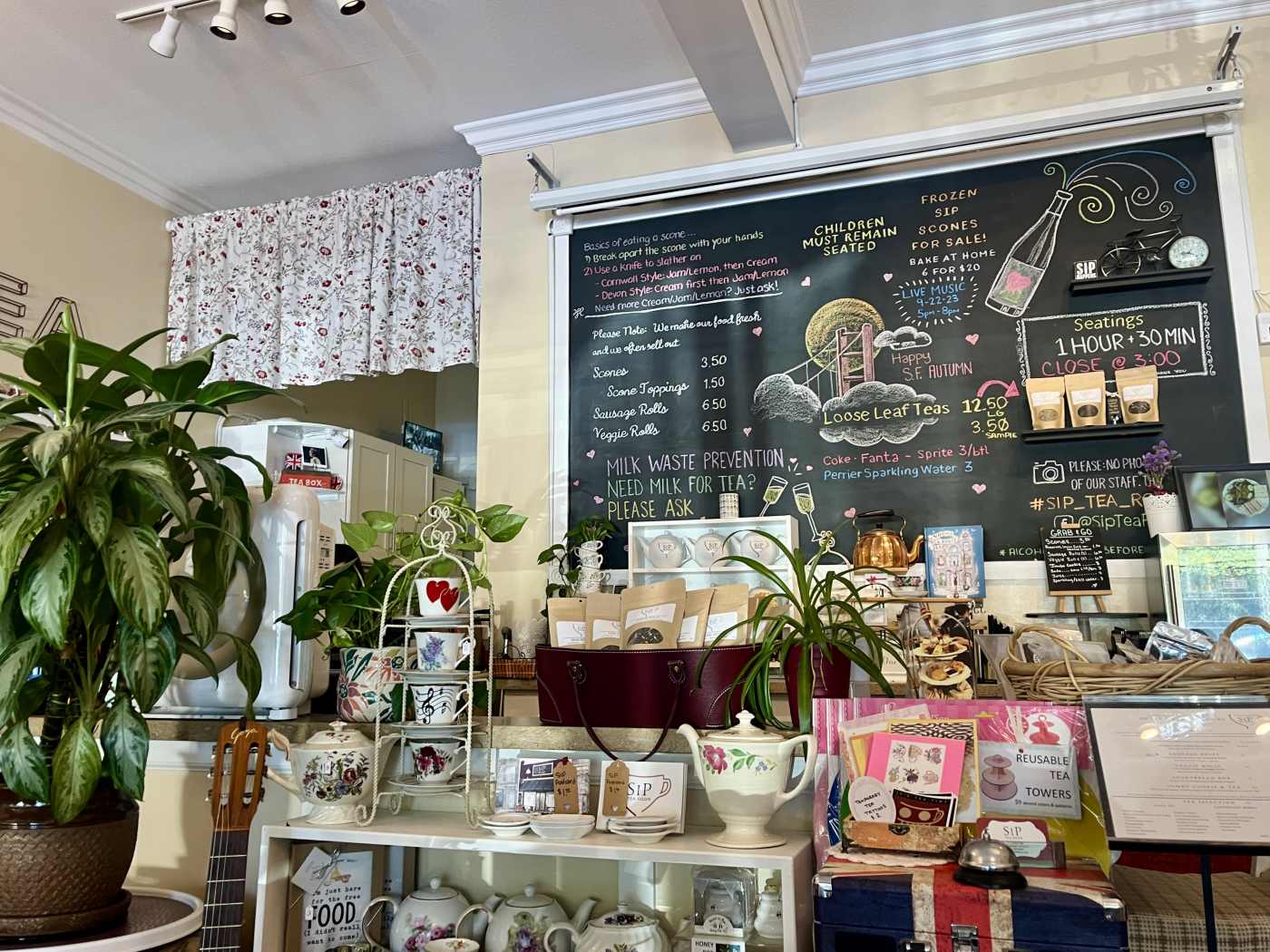"At first glance, Sip Tea Room in the Sunset looks like a cafe. But you’ll soon realize you’re at a casual but not over-the-top afternoon tea experience as soon as the finger sandwiches, black and green teas, and sausage rolls arrive. The rotating selection of freshly made scones is what sets this place apart. Warm to the touch, soft, and just the right amount of sweet, they pair perfectly with the tart strawberry jam, bright lemon curd, and thick clotted cream. To get the full experience ($49 for sausage rolls, sandwiches, scones, fruit, and tiny pastries), book a reservation at least 24-hours in advance, but walk-ins can always order the “lighter-fare” menu (sans fruit and pastries for around $25). " - ricky rodriguez, julia chen 1, lani conway