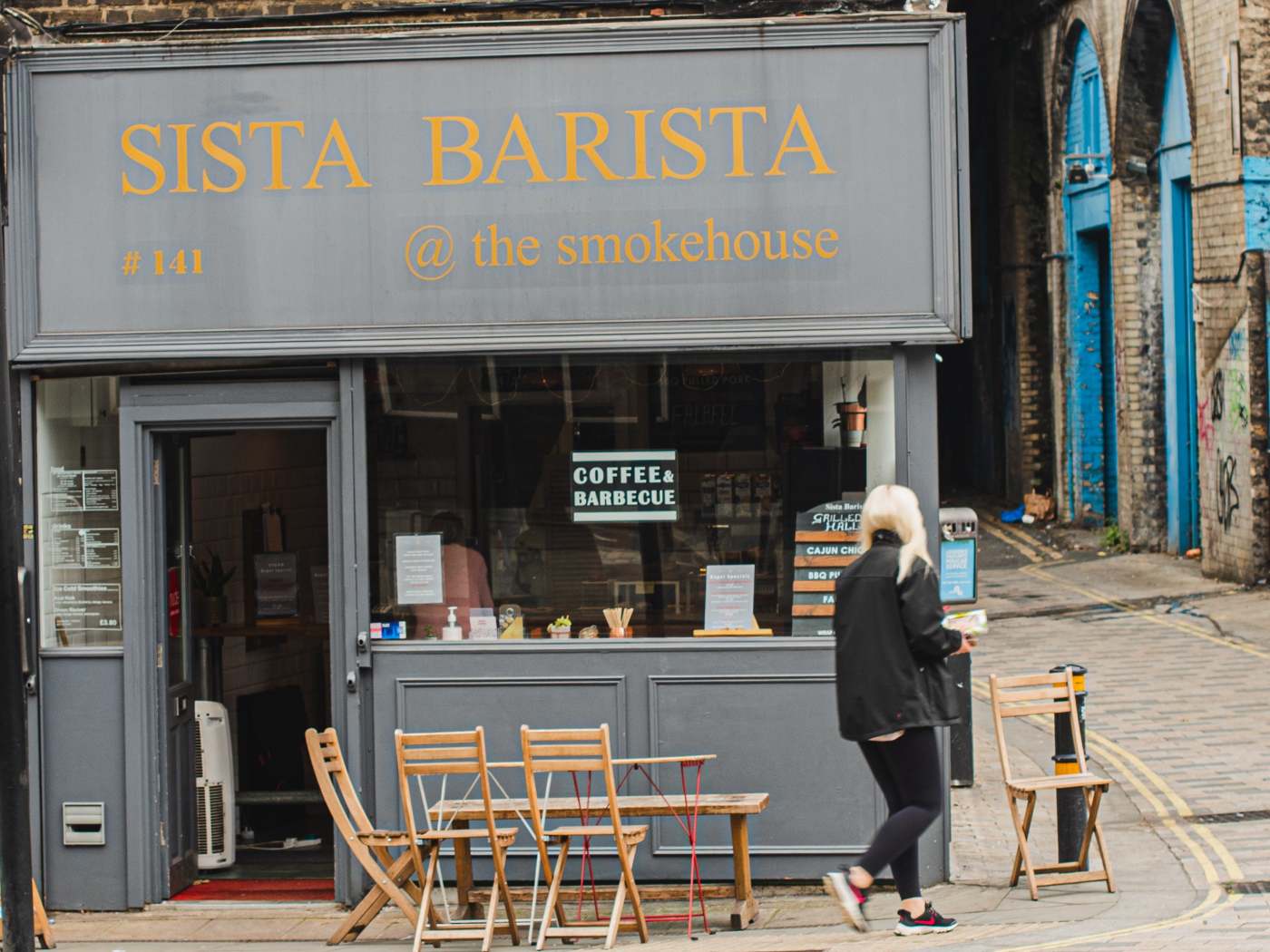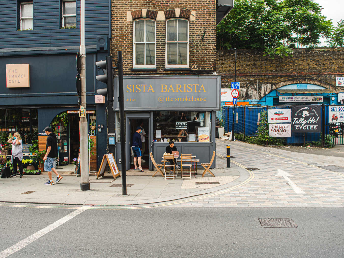 The Sista Barista Westminster Bridge Rd Lambeth, is a busy hole in the wall style cafe, a few stools to sit on inside and a small stool outside the door on the footpath. The coffee was good, but unfortunately it is served in styrofoam cups, and over hot, which did not enhance the coffee. The food available is prepared as you order, Breakfast, Brunch assorted wraps. Even though the place is very busy, there was no undue delay. This venue caters for the London grab a coffee and a wrap scene, while on the move.