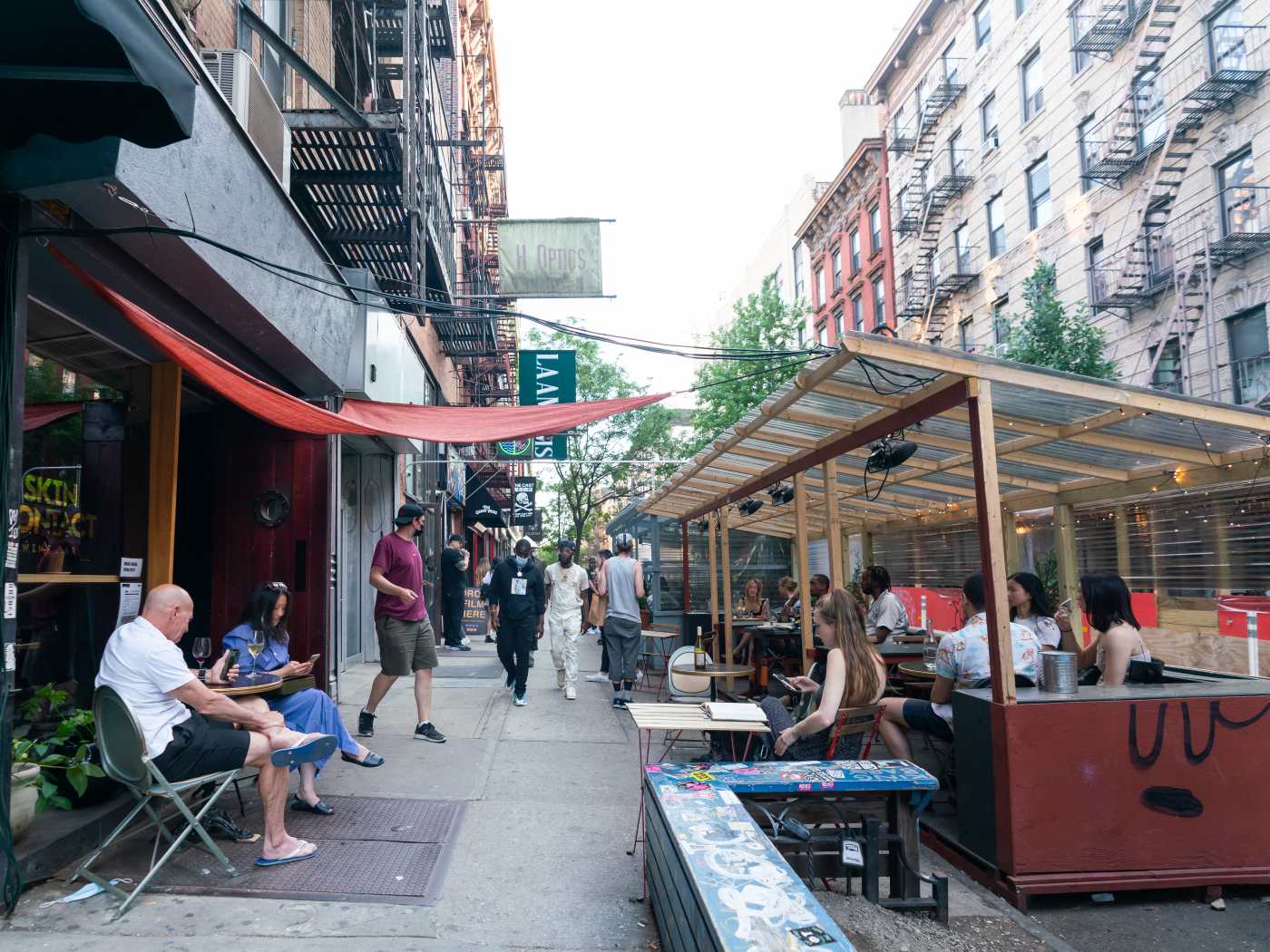 "The next time you’re meeting up with one or two other people who only want to talk about and drink pet-nats, try Skin Contact. This natural wine bar on the LES has a decent amount of sidewalk tables set up, as well as a backyard where they run wine tastings every week. There’s even a “$25 bottle dealer’s choice” section where they’ll choose a sparking white or a chilled red for you." - nikko duren