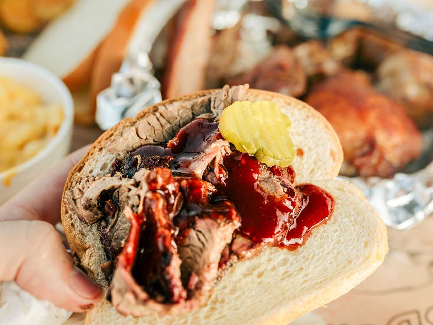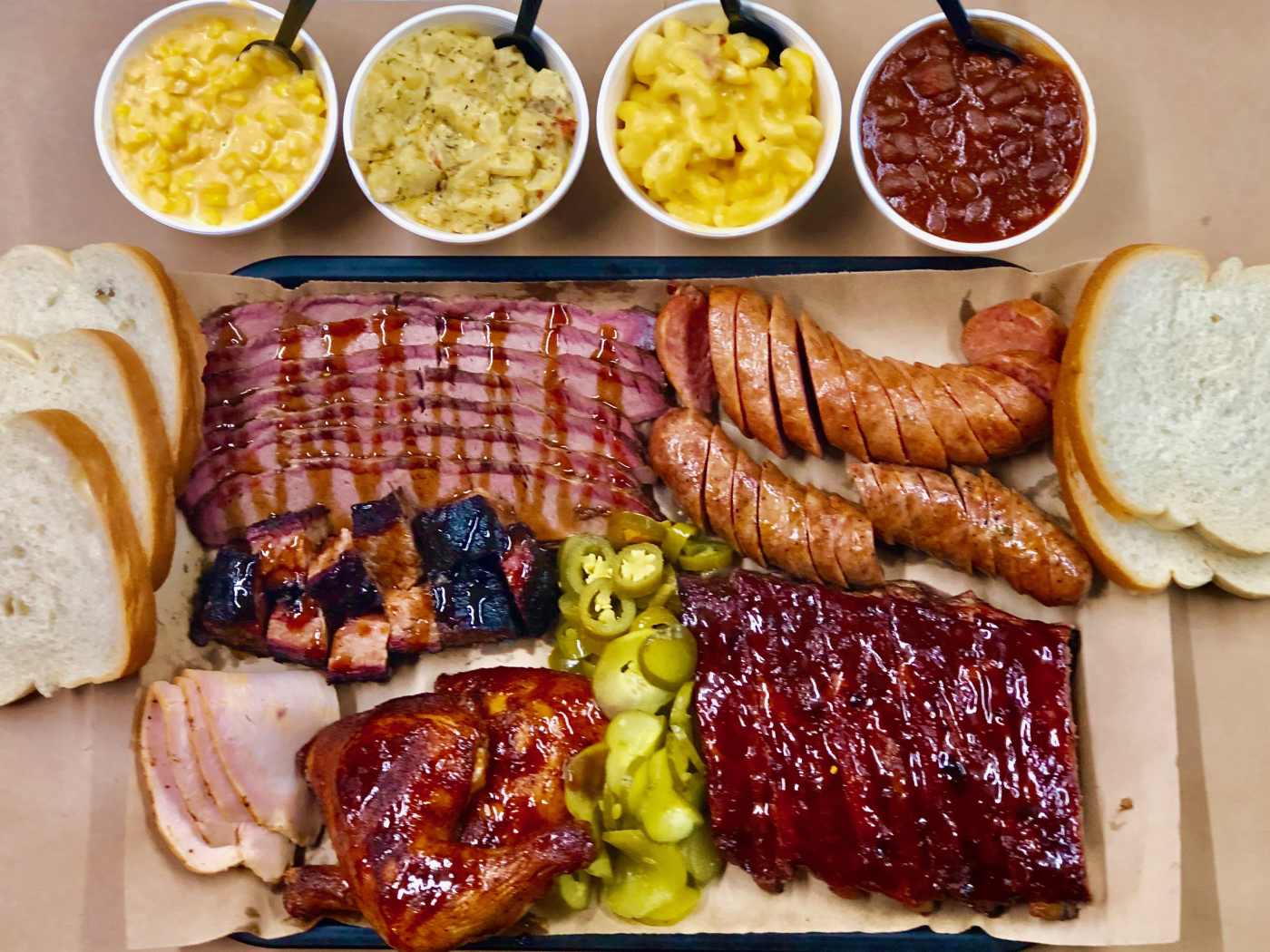 Con: Poorly smoked, barely seasoned, no/low bark, watery bbq sauces. Warm potato salad!?!