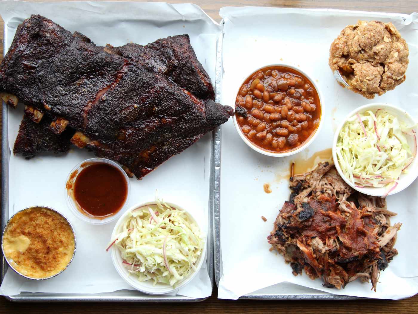 Tender brisket, ribs, pulled pork, and proprietary sauces