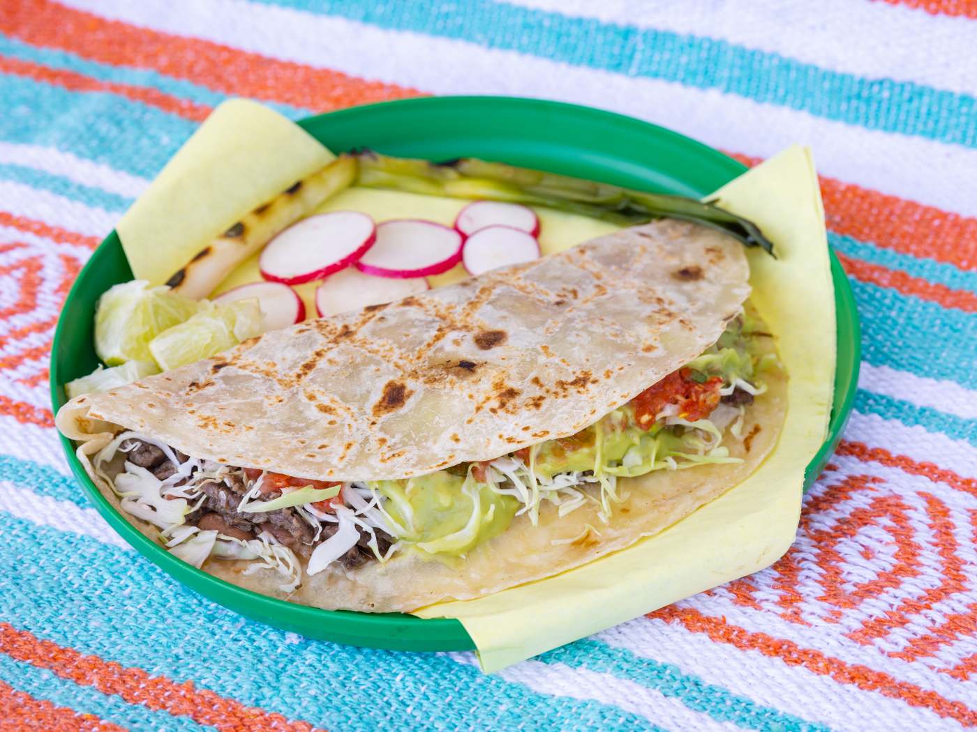 Burritos, tacos, quesadillas with grilled meat & slow-roasted beef
