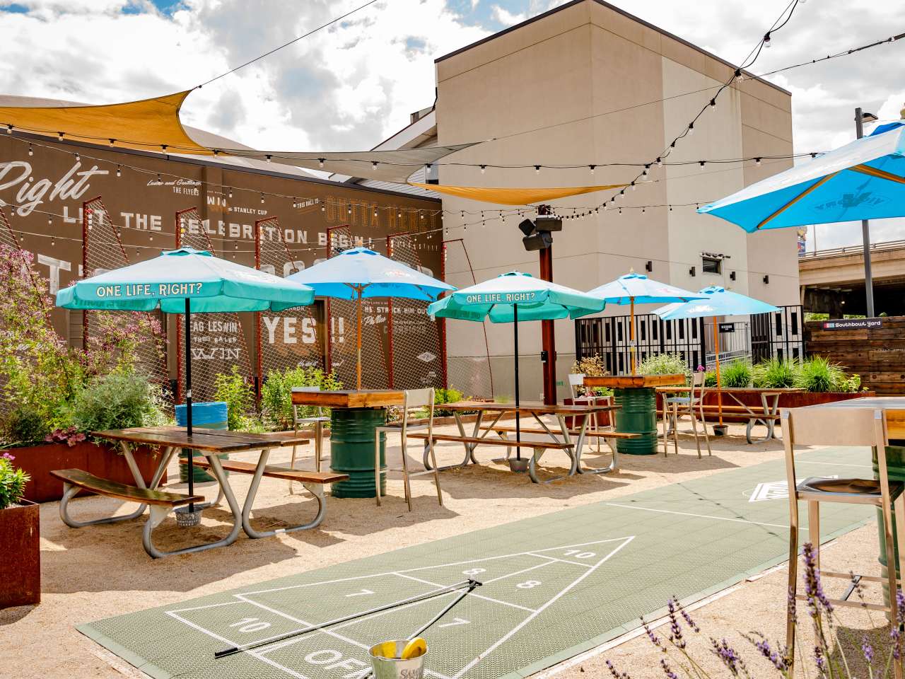 When outside, we played on the pool table and I set up cornhole/baggo and we played for a little while. All in all it was fun, but that's just because of our attitudes towards the hilarity of it all. We essentially had the whole outside to ourselves. The outside bartender, Carson, was setting up and allowed us to even play our own Spotify playlist. We left after about 30 minutes outside because it was so hot out.