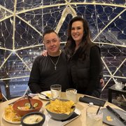 Maybe it will work better once warm weather arrives and they can open the downstairs patio and the upstairs (accessible only by outside stairs) deck. But for now one enters via a "weather flap" via the outside patio (see photo) with the inside door open to the outside patio making it awkward in the small interior space which also has very limited seating. Maybe a handful of booths, one accessible - regular height table with banquette on one side and chairs on the other and the rest high seats at a bar. Plus it was SO LOUD inside with music up, even with only the maybe 8 or 10 people seated at the booths and table (but at that a full house for that seating being taken) so it wasn't buzzing crowd noise. No one seemed to want to perch at the bar. Neither did we. They didn't yet offer the food to go.