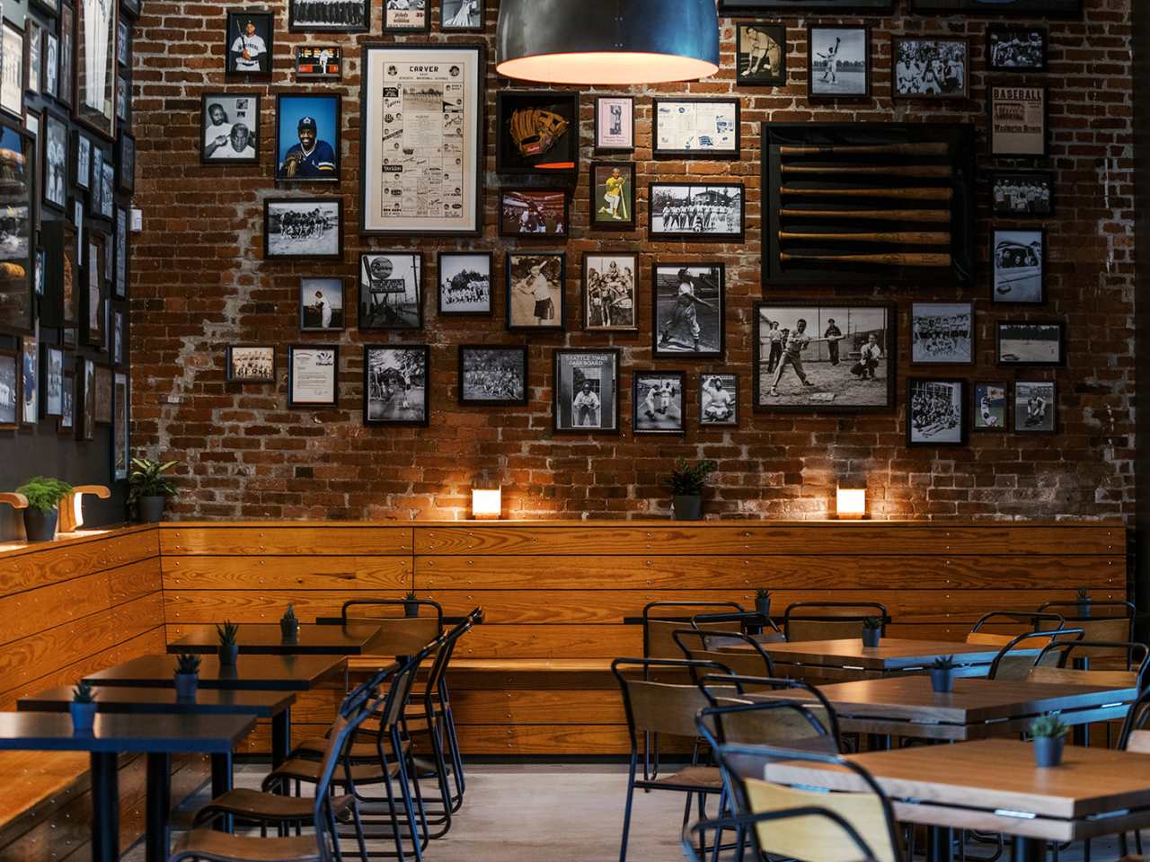 Brewery with craft beers, baseball memorabilia, and bar fare