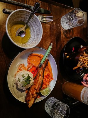 "Chef Kamal Mohamed’s Northeast restaurant StepChld feels like a West Village hangout, with its snug, narrow dining room and slyly inventive menu. This food is delightfully “off-kilter,” as Mohamed puts it. Examples of this have included sweet potatoes that are whipped and fried into cayenne-dusted fritters; pork belly leveled up alongside a silky coconut rice; chicken wings dusted in berbere spice and fenugreek. The mimita-spiced burger is especially popular, but the lavender nori shrimp, fermented in chile butter sauce that’s sopped up with sourdough, is an even better bet. StepChld also has one of the Cities’ best selections of orange wine." - Eater Staff