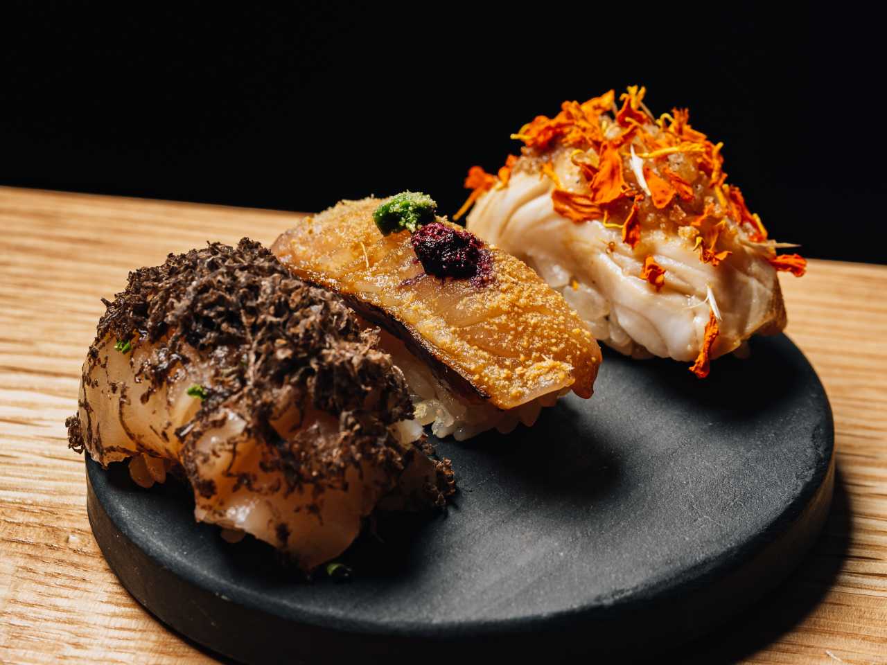 Everyone knows the 5 tastes that we can detect (𝗦𝘄𝗲𝗲𝘁, 𝗦𝗮𝗹𝘁𝘆, 𝗦𝗼𝘂𝗿, 𝗕𝗶𝘁𝘁𝗲𝗿, & 𝗨𝗺𝗮𝗺𝗶). Most Omakase Experiences focus on the Salty, Sour, & Umami notes the heaviest. Sushi | Bar gives you the full experience with some amazing Sweet notes as well as some soft Bitter notes on some of the rolls to accentuate the other core flavors.