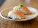 Omakase plate 1- Norwegian Mackerel(Saba), Octopus(Tako), Santa Barbara Abalone, Orange Clam adductor. The Mackerel was wonderful, super buttery yet not fishy at all. The tako was the most tender and best tako I ever had. The Abalone is a very expensive piece of seafood and while nice, the crunch on it was a little weird. The Orange Clam adductor was amazing, so incredibility tender and flavorful, it seemed like a mini sweet scallop.